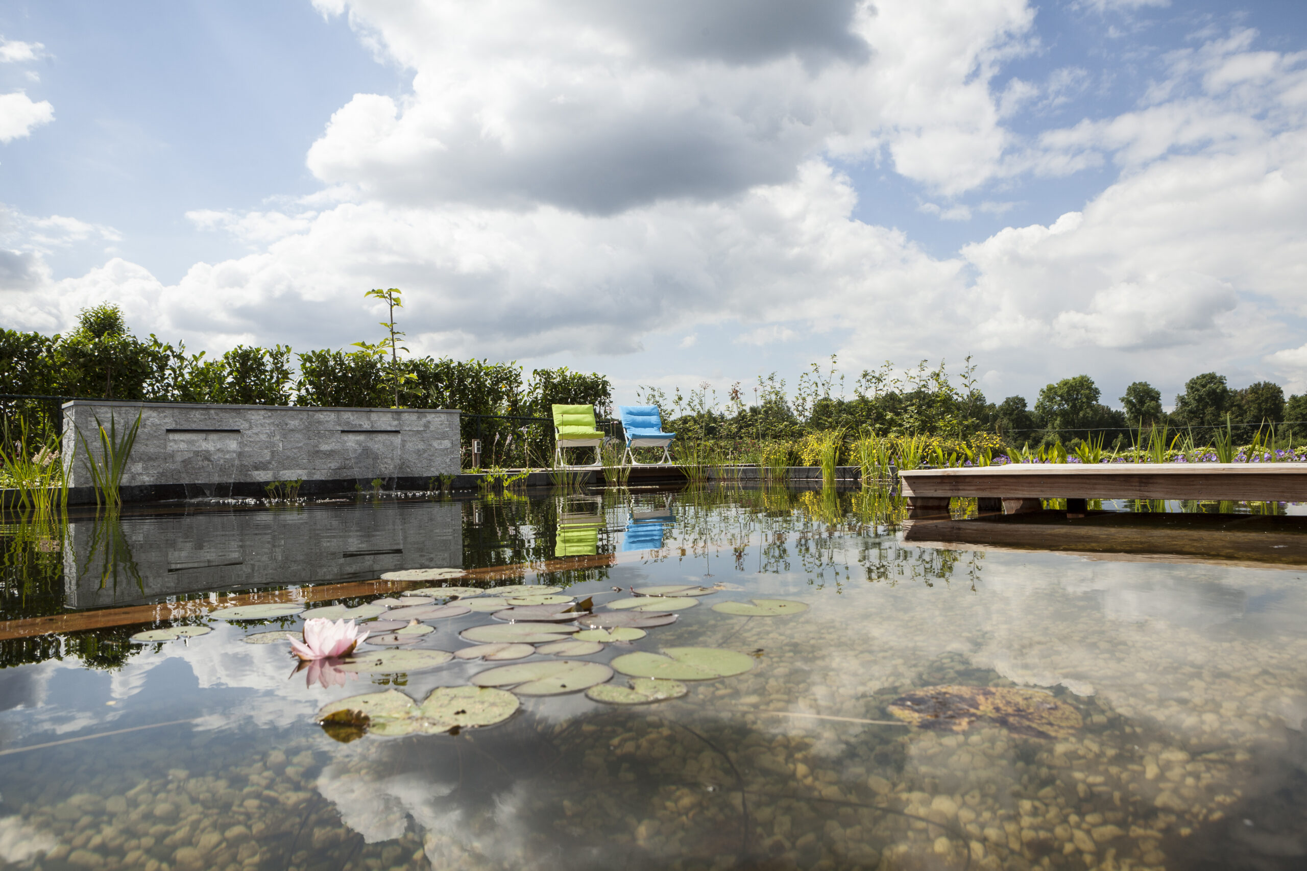 Met een zwemvijver, aangelegd door Snoek Puur Groen, neem je een duik in een vijver van bewezen kwaliteit. Onze zwemvijvers voldoen aan de FLL-richtlijnen en worden geleverd met certificaat: hét bewijs dat de vijver voldoet aan de gestelde eisen.